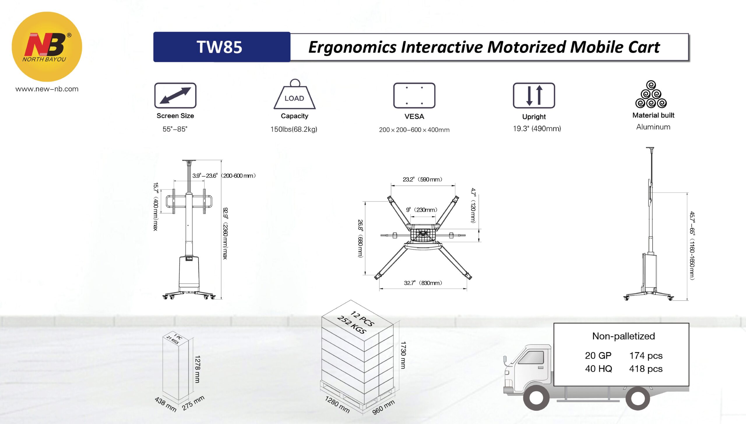 Motorized Lift Mobile Stand with Wireless Remote control